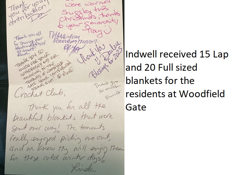 I am writing to express my very deep gratitude for the absolutely unique and beautiful blankets that were provided to Highview Residences as such wonderful Christmas gifts for the residents. My mother was a very proud recipient of one of the blankets at the Franklin House party yesterday. It was astonishing to see reach resident open their own special blanket, and to see the joy on each face as they revealed what they had received. Such a thoughtful and caring gift for each resident and it was so obvious how much work and love went into making every blanket. Please share my gratitude with the wonderful people who created these pieces of art. They will be well used. December 2024
