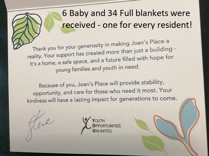 It takes a community to build a home. Today we want to recognize The Crochet Club of London for their amazing donation of crocheted blankets for Joan’s Place.